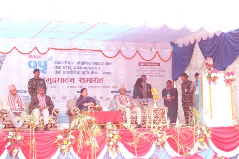 राष्ट्रपति विद्यादेवी भण्डारीले १५औं अन्तर्राष्ट्रिय औद्योगिक व्यापार मेला तथा घरेलु उद्योग महोत्सव २०७५ को शुक्रबार राजधानीमा उद्घाटन गर्नुभएको छ।