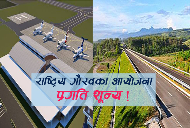 सरकारले उच्च प्राथमिकतामा राखी कार्यान्वयनमा ल्याईएका विभिन्न २१ राष्ट्रिय गौरवका आयोजनाको काम त्यति सन्तोषजनक छैन । केही आयोजनाको काम उत्साहजनक देखिएपछि ३१ वर्षअघिदेखि शुरु भएका गौरबका आयोजनाहरुको प्रगति कछुवाको गतिमा छन् भने कतिपय आयोजना शुरु हुने समेत अत्तोपत्तो छैन ।