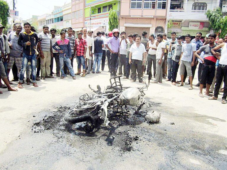 बन्दको अवज्ञा गरेको भन्दै आइतबार राजविराजमा राजपाका कार्यकर्ताले एउटा सरकारी मोटरसाइकलमा आगजनी गरेका छन्। राजपाका कार्यकर्ताले स१ब ५२९ नम्बरको मोटरसाइकललाई स्थानीय गजेन्द्र चौकमा दिउँसो १ बजे रोकेर आगजनी गरेका हुन्। आगजनीबाट उक्त मोटरसाइकल पूर्ण रूपमा जलेर नष्ट भएको छ।