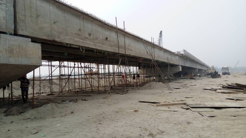 बहुप्रतिक्षित मेची पुलको निर्माण कार्य अन्तिम चरणमा पुगेको निर्माण कम्पनीले जनाएको हो । नेपाल सरकारले बजेट निकासा गरेपछि वि.स. २०६६ माघ २१ गतेदेखि मेची पुल निर्माण कार्य सुरु गरेको हो । तीन बर्षमा निर्माण कार्य सम्पन्न हुनुपर्ने मेची पुल ९ बर्षपछि बल्ल बन्न लागेको छ । लगभग ९५ प्रतिशत निर्माण कार्य सम्पन्न भइसकेकोले अव दुई महिनामा पुल तयार हुने छ । एक बर्षअघि नै १७ पिलर मध्ये १५ वटा पिलरसहित पुलमाथिको ढलान पुरा भइसकेको छ । निर्माणाधिन अवस्थामा पुलको १० र ११ नम्बरको पिलर माटो मुनि धसाउने क्रममा बाङ्गिएको थियो । सो पिलरमा अहिले धमाधम काम भइरहेको कन्ट्रक्सनका इन्जिनियर सुरेन्द्र खतिवडाले बताए । इन्जिनियर खतिवडाले भने, ‘दुई वटा पिलर उठाउने काम सम्पन्न भइसकेको छ, ‘अहिले पिलर माथि तयारी अवस्थामा रहेको गडर क्रेनको सहयोगमा चढाउने काम हुदैछ ।’ ‘११ वटा गडर चढाइसकेका छौ अव एउटा गडर उठाउन बाँकी छ, उनले भने– ‘चढाएको गडर माथि रड बुन्ने काम तिव्र पारेका छौ, केही दिनभित्र त्यसमाथि ढलान गर्ने छौ ।’ १०५ मिटर मात्र निर्माण कार्य बाँकी रहेकाले यही माघ मसान्त सम्म पुलको काम सम्पन्न भइसक्ने उनको दावी छ ।