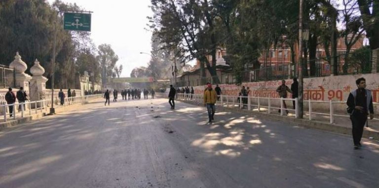 निर्वाचन आयोग, सरकार र इन्धनमा गरिएको मूल्यबृद्धिबिरुद्ध आन्दोलनमा उत्रिएको नेकपा एमाले सम्बद्ध अनेरास्ववियुका बिद्यार्थी र प्रहरीबीच त्रिचन्द्र क्याम्पस अगाडि झडप भएको छ । सडक कब्जा गरी नाराबाजी गरिरहेका आन्दोलनकारी बिद्यार्थीमाथि प्रहरीले अश्रुग्यास प्रहार गरेको छ । झडपमा अनेरास्ववियुका उपाध्यक्ष महेश बर्तौला लगायत दर्जनौं बिद्यार्थी नेता तथा कार्यकर्ता घाइते भएको बताइएको छ ।