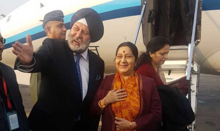 स्वराजलाई स्वागत गर्न नेपालका लागि भारतीय राजदूत मञ्जिमसिंह पुरी लगायत भारतीय दुतावासका अधिकारीहरु पनि पुगेका थिए ।
