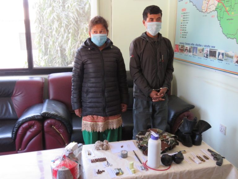 मकवानपुरको मनहरी गाउँपालिका वडा नम्बर–९ स्थित सानोभावर जंगलमा माघ २४ गते गोली प्रहार गरी २ जनालाई घाइते बनाएको आरोपमा मनहरीका एक दम्पत्तीलाई प्रहरीले पक्राउ गरेको छ । घटनास्थलबाट बारुद, कटुवा पेस्तोल तथा प्रेसर कुकर बमसहित विभिन्न विष्फोटक पदार्थसमेत बरामद गरिएको छ ।
