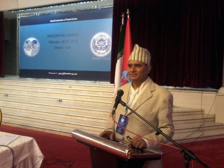 नेपाल समाचारपत्र, काठमाडौं । ईरानको राजधानी तेहरानमा शुरु भएको बिश्व ट्रेड युनियन महासंघ (डब्लुएफटीयु) केन्द्रीय कमिटी (प्रेसिडेन्सियल काउन्सिल) को बैठकमा काउन्सिल सदस्य प्रेमलकुमार खनालले सम्बोधन गर्नु भएको छ ।