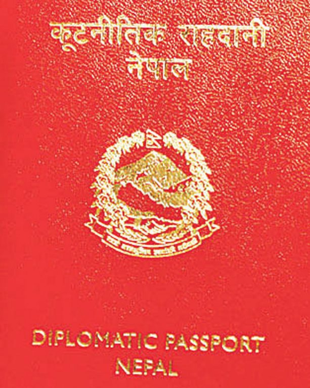 कूटनीतिक पासपोर्ट रातो, अफिसियल पासपोर्ट नीलो र साधारण पासपोर्ट हरियो रंगको हुन्छ। रातो रंगको भएकै कारण कूटनीतिक पासपोर्टलाई रातो पासपोर्ट भनिँदै आएको हो। सरकारी कर्मचारीलाई अफिसियल र सर्वसाधारण नागरिकलाई साधारण पासपोर्ट दिइन्छ। राष्ट्रपति, उपराष्ट्रपति, प्रधानमन्त्री, प्रधानन्यायाधीश, संसद्का सभामुख, उपप्रधानमन्त्री, मन्त्री, संसद्का विपक्षी दलका नेता, उपसभामुख, राज्यमन्त्री, राष्ट्रिय योजना आयोगका उपाध्यक्ष, नेपाल प्रज्ञा प्रतिष्ठानका कुलपतिहरूले रातो पासपोर्ट प्रयोग गर्न पाउने प्रावधान छ।