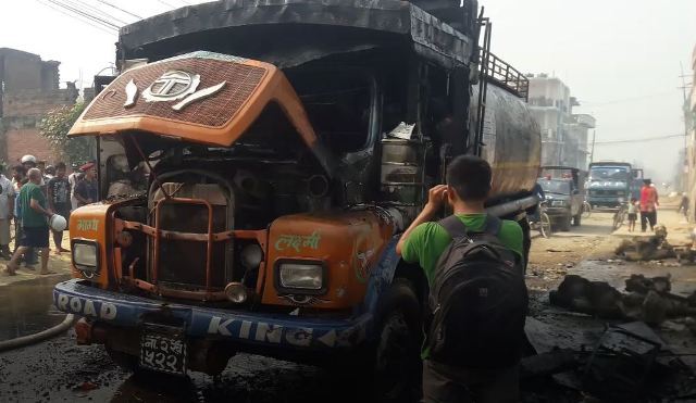 पर्सा । पेट्रोलियम पदार्थ ढुवानी गर्ने ट्याङकरमा आगजनी भएको छ । बाइपास सडकमा राेकिराखेकाे अवस्थामा ना २ ख ५ २२ नम्बरको ट्याङकरमा साेमबार बिहान आगलागी भएको हो ।