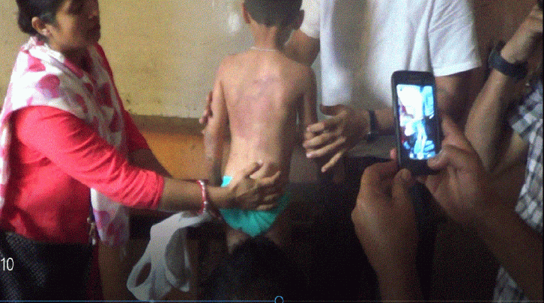 ५ वर्षे ति बालकको ढाड र हातको पाखुरामा आइरनले छाला पोलेर पिल्सीएको छ । छोरालाई आइरनले डाम्ने सरलालाई भने मोरङ प्रहरीले पक्राउ गरेको छ । पटक–पटक आफुहरुले बालककी आमा सरलालाइ बच्चा नकुट्न आग्रह गर्दा पनि नमानेको र बालकले तातो आइरनले पोलेको घाउ बच्चा स्वयम्ले देखाएपछि आफुहरुले सहन नसकेर बच्चाका बाबु र प्रहरी प्रशासनलाइ खबर गरेको विद्यालयले जनाएको छ ।