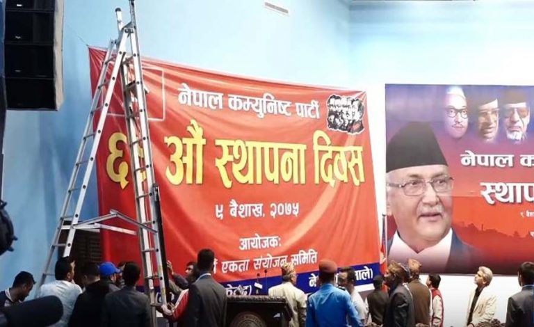काठमाडौं । एमाले–माओवादी एकताको संयुक्त कार्यक्रम शुरु भएको छ । कम्युनिष्ट पार्टीको स्थापना दिवसमा लेनिन र माओको तस्वीर विनाको ब्यानर बन्नुमा आफूहरुको गल्ती भएको केपी ओली र माओवादी केन्द्रका अध्यक्ष पुष्पकमल दाहाल प्रचण्डले स्वीकार गरेपछि अहिले कार्यक्रम शुरु भएको छ ।