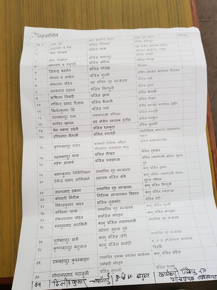 सहसचिव सिडिओ हुने जिल्लाहरुमा उपसचिवलाई कामुको जिम्मेवारी दिएर खटाइएको छ।