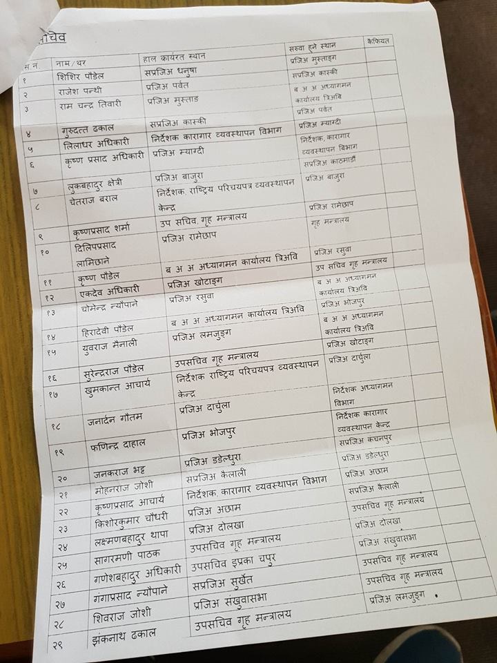 काठमाडौं । गृह मन्त्रालयले एकैपटक ६० प्रमुख जिल्ला अधिकारी (सिडिओ)को सरुवा गरेको छ। ३१ जना सहसचिव तथा २९ जना उपसचिवको गृहले सरुवा गरेको हो।