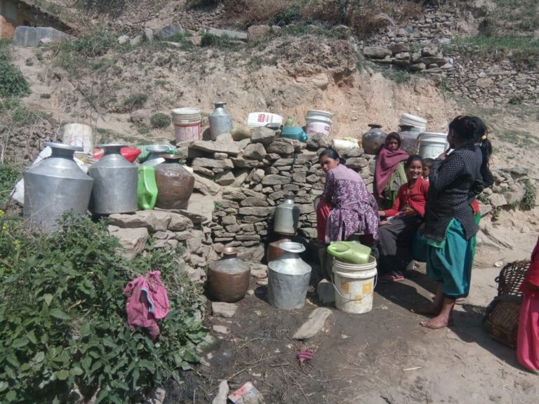 फोटो क्याप्सन: खानेपानीको चरम अभाव झेल्दै अएको पलाता धौलागोह वासीहरु दुइ घण्टाको पैदल दुरीमा रहेको धारामा पानी भर्न रातभर जाग्राम वस्नु पर्ने वाध्यता रहेको छ ।