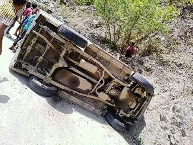सुर्खेत दैलेख सडक खण्ड अन्तरगत सोमवार दुर्घटनामा परेको जिप ।