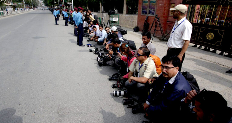 परराष्ट्र मन्त्रालयले मोदी जाने स्थलको प्रेस पास वितरण गरेको थियो । उक्त पासलाई मान्यता नदिई भारतीय सुरक्षा अधिकारीले नेपाली एवं अन्य अन्तर्राष्ट्रिय सञ्चार माध्यमका प्रतिनिधिलाई राष्ट्रिय सभागृह प्रवेशमा रोकटोक गर्न थालेपछि सञ्चारकर्मीहरु आक्रोशित भएर विरोधमा उत्रिएका हुन् । प्रवेशमा भेदभाव गरेको विरोधमा मोदी आउने सडकमा सञ्चारकर्मीहरुले क्यामेरा “डाउन” गरेका छन् ।