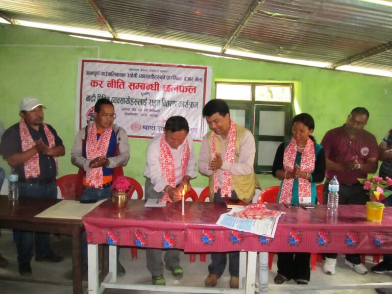 कार्यक्रमको उद्घाटन गर्दै अन्नपूर्ण गाउँपालिकाका अध्यक्ष क्या. डमबहादुर पुनले सबै उद्योगी व्यापारीहरु करको दायरामा आउनुपर्ने बताए । उनले स्थानीयको मागलाई ध्यानमा राखेर गाउँपालिकाले आवश्यक नीतिनियम बनाएर कार्यान्वयन गर्ने बताउँदै अन्नपूर्ण गाउँपालिकाभित्र रहेका स्रोतसाधनहरुको परिचालन गर्ने र लगानीमैत्री वातावरण निर्माण गरिने बताएका छन् ।
