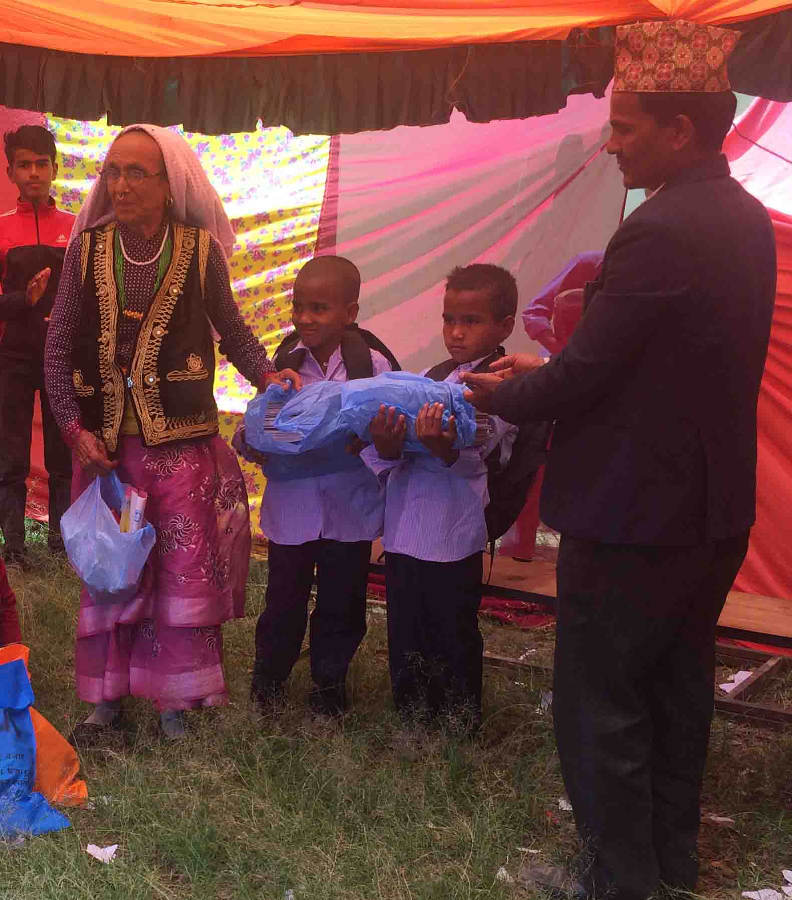उनीहरुको लागी १३ दर्जन कापी, चार जोड कपडा, १ पेटी कपडा धुने साबुन, २ दर्जन नुहाउने साबुन, ४ प्याकेट मञ्जन, ४ वटा बुरुस, २ वटा ताबेल, २ जोड जुत्ता, २ जोड चप्पल, २ वटा झोला, लगाएतका करिव ३० हजार बराबरको सामाग्री हस्तानतरण गरिएको हो । कार्यक्रममा बोल्दै गाँउपालिका अध्यक्ष धर्मबहादुर के.सीले समाचार प्रकाशन गर्ने नेपालसमाचार पत्र, संवाददाता धनवीर दाहाल, स्थानीय संचारकर्मी बिपना बुढा तथा समाचार पढेर बालकहरुको लागी कपडा र अन्य सामाग्री प्रदान गर्ने समाजसेवी महेन्द्र धिताल प्रति कृतज्ञता ज्ञापन गर्नुभयो ।