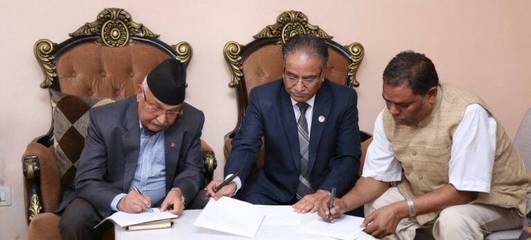 सोमबार बालुवाटारमा भएको बैठकमा प्रधानमन्त्री एवं नेकपाका अध्यक्ष केपी शर्मा ओली, अध्यक्ष प्रचण्ड र फोरम अध्यक्ष उपेन्द्र यादवले दुईबुँदे सहमतिमा हस्ताक्षर गरेका हुन् ।