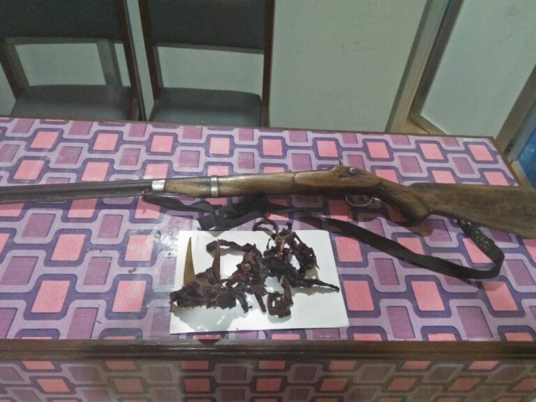 पुनको घरको कुनामा लुकाइछिपाई राखेको अवस्थामा विना लाइसेन्स रहेको अवैध एकनाले भरुवा बन्दुक एक थान र दुर्लभ जनावरको जस्तो देखिने सुकाइएको ८ ओटा लहराको मासुसहित उनलाई पक्राउ गरिएको प्रहरी निरीक्षक दिपक महत क्षत्रीले जानकारी दिनुभयो ।