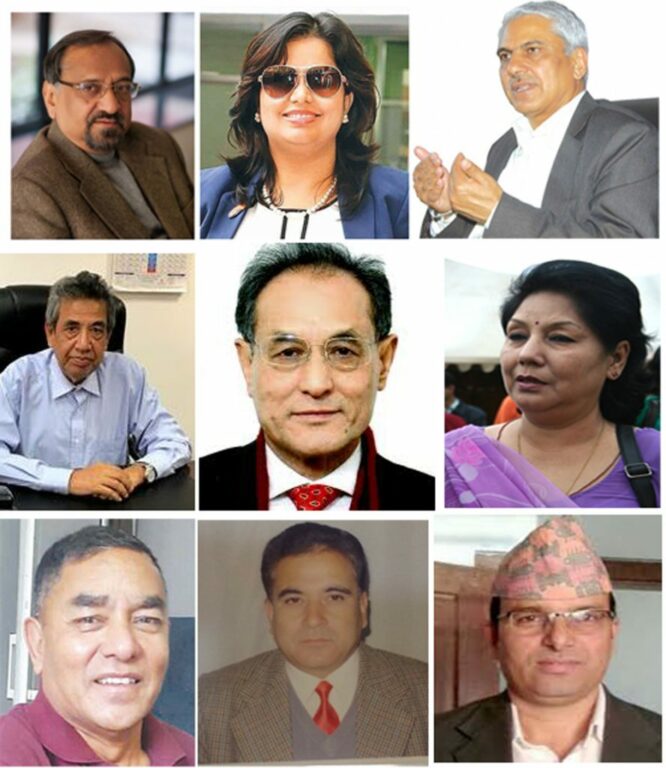(तस्बीरमाः डा. विश्वम्भर प्याकुरेल (श्रीलंका), शर्मिला पराजुली (ओमान) डा. चोपलाल भुसाल (बंगलादेश), निरन्जन थापा (इजरायल), भीम उदास (म्यानमार), प्रतिभा राणा (जापान),भरतबहादुर रायमाझी (स्पेन), अर्जुनजंगबहादुर सिंह (दक्षिण कोरिया) र रमेशप्रसाद कोइराला (कतार) माथिबाट क्रमशः)
