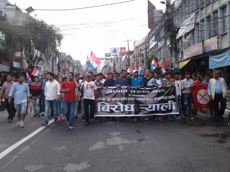 ओलि सरकारको दमनकारी नितिको लागि नेविसंघले गरेको आन्दोलनमा तरुणदलले साथ दिदै लाचार सरकारलाई ढाल्ने तरुण दल क्षेत्र नंबर २ का क्षेत्रीय सभापती दिपक गुरुङ माइलाले बताए । ‘उखान टुक्काले मात्र देश चल्दैन जनताको अधिकार जनतालाइ दिनुपर्छ, ज्यादती र महँगिले जनतालाइ दुख दिन पाइदैन सरकारले महँगि तत्काल नघटाए आन्दोलन थप चर्कउने छौं ।’उहाँले बताउनुभयो। प्रेस स्वतन्त्रता माथिको हस्तक्षेप बन्द गर्दै मूल्य वृद्धि तत्काल घटाउनुपर्ने माग सहित विरोध गरेका थिए ।