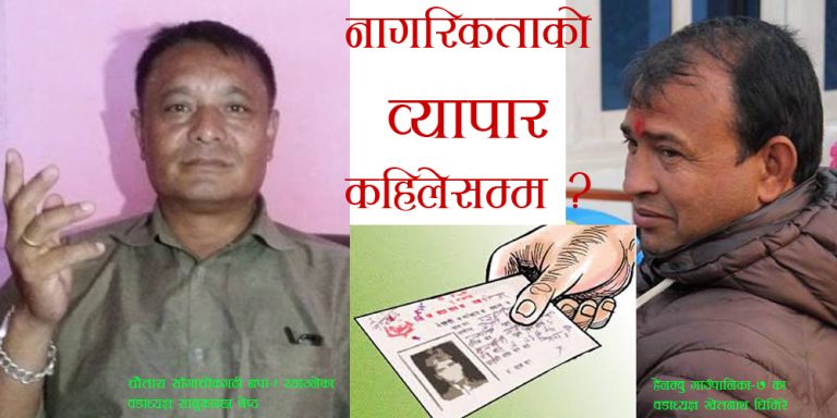 सिन्धुपाल्चोक । सिन्धुपाल्चाेकमा नागरिकताको व्यापारमा नेकपा र कांग्रेस बराबर देखिएका छन । कीर्ते नागरिकता सिफारिस गरेको अभियोगमा कांग्रेस नेता समेत रहेका वडा अध्यक्ष पक्राउ परेको एक साता नबित्दै नेकपाका नेता समेत रहेका अर्का वडा अध्यक्ष कीर्ते नागरिकता सिफारिसकै अभियोगमा पक्राउ परेका छन ।