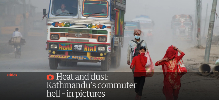 द गार्जिएन नामक चर्चित अन्तर्राष्ट्रिय समाचार संस्थाले काठमाडौंको प्रदुषण र सडक बिस्तारपछि जनताले भागेको नारकीय जीवनको तस्विरलाई उच्च प्राथमिकताका साथ प्रकाशित गरेको छ । द गार्जिएनका लागि पेटे प्याटिसनले खिचेका तस्विरहरुलाई फोटो कथाको रुपमा उच्च स्थान दिएर प्रकाशित गरिएको हो ।