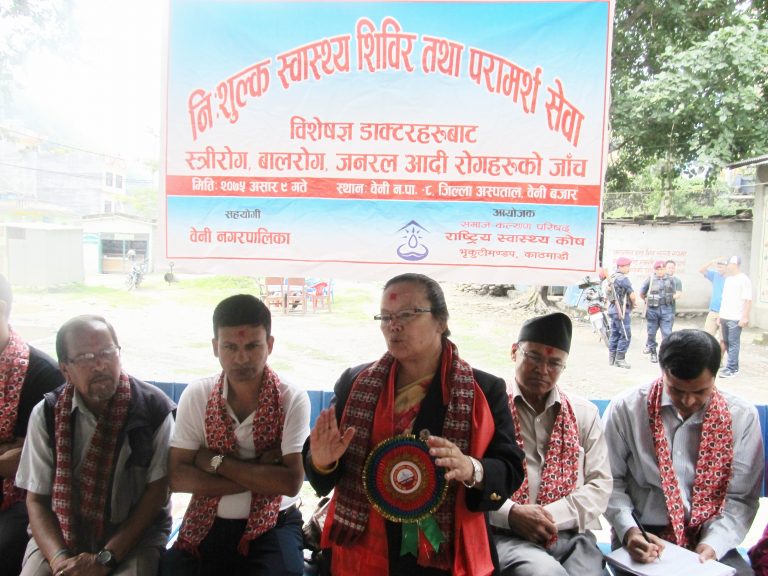 प्रताप बानियाँ, म्याग्दी । महिला बालबालिका तथा ज्येष्ठनागरिक मन्त्री थममाया थापाले नागरिकले स्वास्थ्य सेवा सर्वसुलभ रुपमा पाउनुपर्ने बताउनुभएको छ । समाजकल्याण परिषद अन्तर्गतको राष्ट्रिय स्वास्थ्य कोषले शनिबार म्याग्दीको बेनीमा आयोजना गरेको निःशुल्क स्वास्थ्य शिविर तथा परामर्श सेवालाई सम्बोधन गर्दै उहाँले सर्वसाधारणहरुले सरल र सहज तरिकाले स्वास्थ्य सेवा पाउनुपर्ने बताउनुभएको हो ।