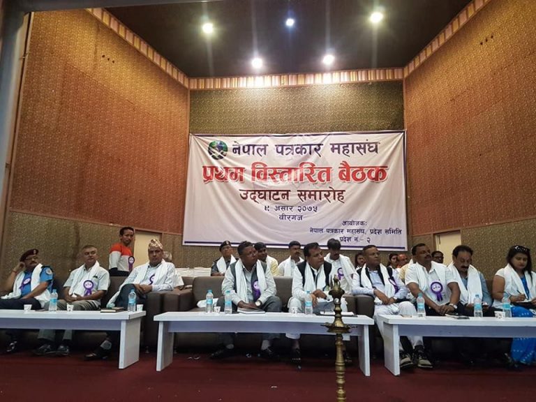 प्रदेश(२ का अध्यक्ष दीपेन्द्र चौहानको अध्यक्षतामा भएको प्रदेश स्तरीय विस्तारित बैठको उद्घाटन शत्रमा बोल्दै पत्रकार महासंघका केन्द्रीय उपाध्यक्ष विपुल पोख्रेल, प्रदेश(२ का उपाध्यक्ष केसी लामिछाने, महासंघ पर्सा शाखाका अध्यक्ष श्याम बन्जारालगायत पत्रकारले प्रदेश सरकारले पारित गरेको नीति तथा कार्यक्रममा पत्रकारको हितको लागि खासै नीति नआएको दावी गरेका छन्।