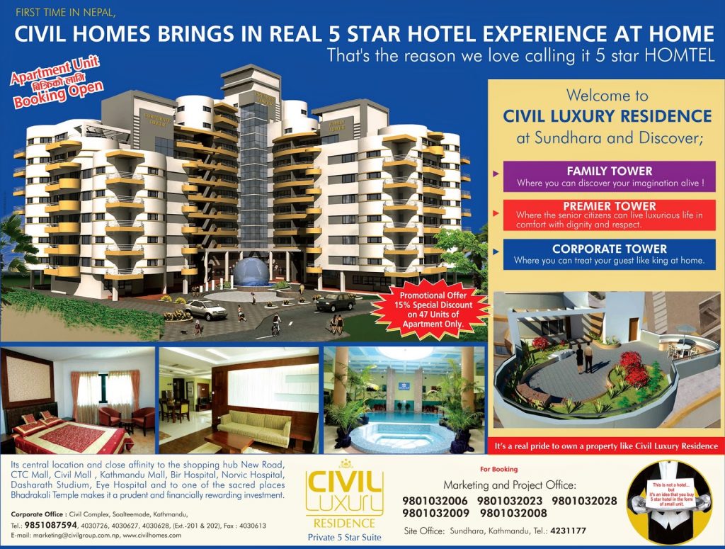 ४ वर्षअगाडि सुनधारमा पाँचतारे सुविधायुक्त आवासीय सिभिल लक्जरी रेजिडेन्स अपार्टमेन्ट बुकिङ खुला गरेको थियो। ४ वर्ष नाघिसक्दा पनि उक्त अपार्टमेन्ट बुकिङ हुन नसकेपछि तामाङ अहिले ३ अर्ब ५० करोडको लागतमा होटल बनाउने भन्दै प्रचार गर्न थालेका छन्।