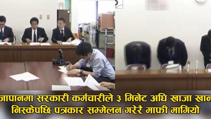 राजबिन थापा । २५ जुन जापानको पश्चिमी शहर कोबे स्थित जल विभागमा काम गर्ने एक सरकारी कर्मचारीले खाजा खाने समय भन्दा तीन मिनेट अघि आफ्नो कक्ष छाडेर हिँडेको तथ्य फेला परेपछि उक्त कार्यालयका प्रमुख सहित जिम्मेवार अधिकारीहरुले सार्वजनिक रुपमा माफी मागेका छन् ।