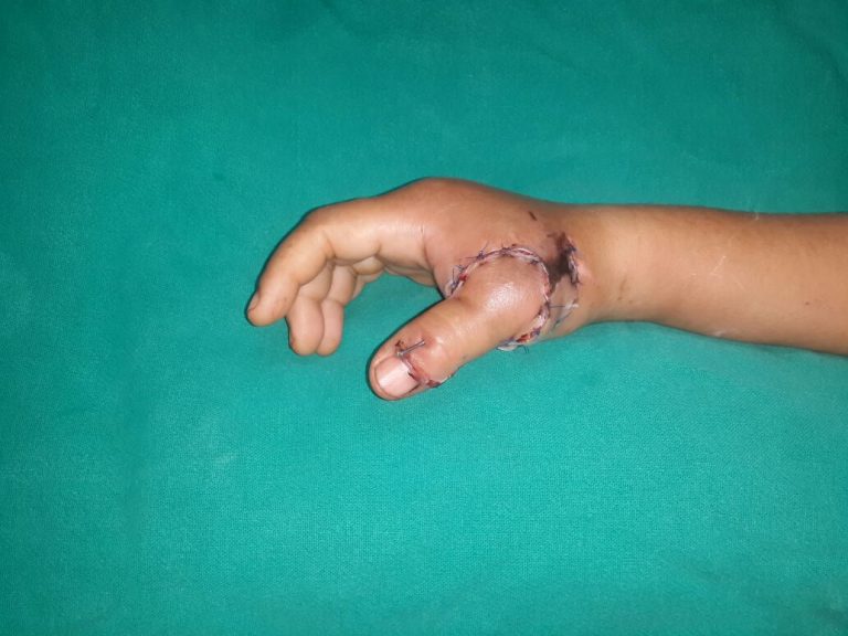 नेपाल मेडिसिटी अस्पताल भैसेपाटीमा रिप्लान्टको माध्यमबाट एक कपडा उद्योगका मजदुरको चुडिएको औला शल्यक्रियाका माध्यमबाट जोडियो ।