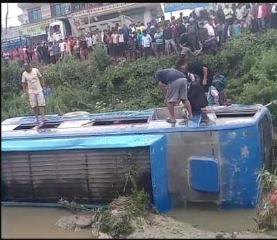 धर्मस्थलीबाट रत्नपार्कतर्फ आउँदै गरेको बा ३ क ३७४९ नम्बरको बस बिहान दुर्घटनामा परेको हो ।