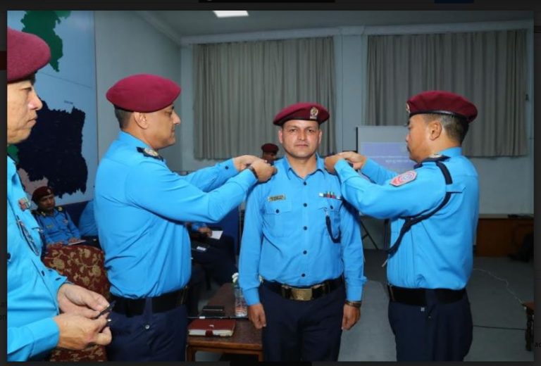 काठमाडौ । प्रहरी महानिरीक्षक सर्वेन्द्र खनालले प्राविधिक प्रहरी नायव महानिरीक्षक, प्राविधिक प्रहरी वरिष्ठ उपरीक्षक र प्राविधिक प्रहरी उपरीक्षक, प्राविधिक प्रहरी नायव उपरीक्षक र प्राविधिक प्रहरी निरीक्षक पदमा पदोन्नती भएका प्रहरी अधिकृतहरुलाई आइतबार प्रहरी प्रधान कार्यालयमा आयोजित एक समारोहबीच दज्र्यानी चिन्हद्वारा सुशोभन गर्नुभयो ।
