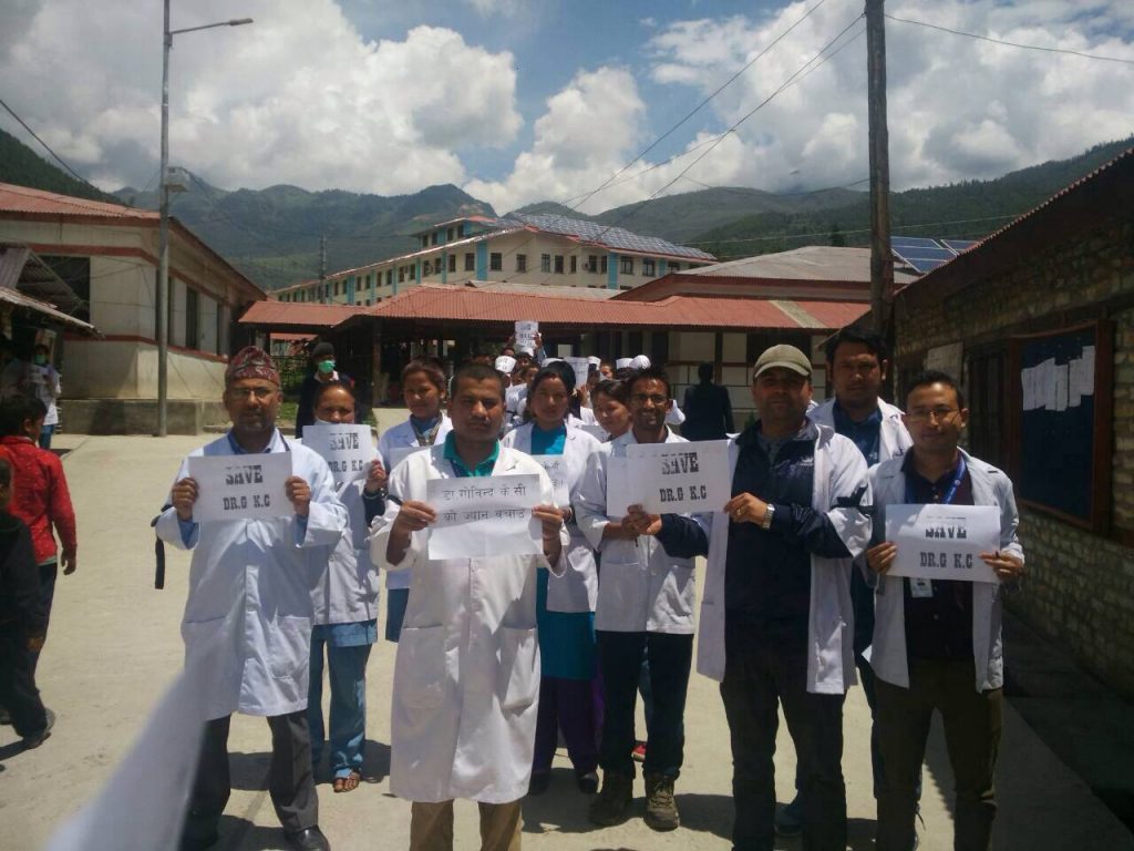 उहाँ भन्नुहुन्छ–चिकित्सक तथा नागरिक समाजको तर्फबाट सरकारलाई पटक पटक लिखित तथा मौखि जति आग्रह गर्दा पनि व्यवस्ता गरिएका कारण कर्णाली प्रदेशका सम्पूर्ण स्वास्थ्य संस्था आकस्मिक बाहेक मंगलबार देखि प्राय ठप्प भएका छन् । डा. केसीलाई जतिसक्दो चाडो अस्पताल नपुर्याए जुनसुकै बेला जे पनि हुन सक्छ र यसको सम्पूर्ण जिम्मेवार सरकार हुनुपर्छ ।