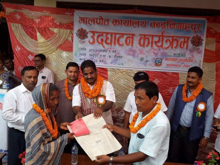 कार्यालयको उदघाटन रौतहट क्षेत्रनम्बर ३ का प्रतिनिधि सभा सदस्य प्रभु साहले गर्नु हुदै उहाले जनता लाई घरदैलोमा सेबा पुरयाउने उदेश्य अनुरुप चन्द्रनिगाहपुरमा मालपोत र नापी कार्यालयको स्थापना भएको बताउनु भयो । यस अघि ती दुबै कार्यालयको सेबाकेन्द्र रौतहटको मौलापुर र गरुडामा स्थापना भई संचालनमा आएको थियो ।