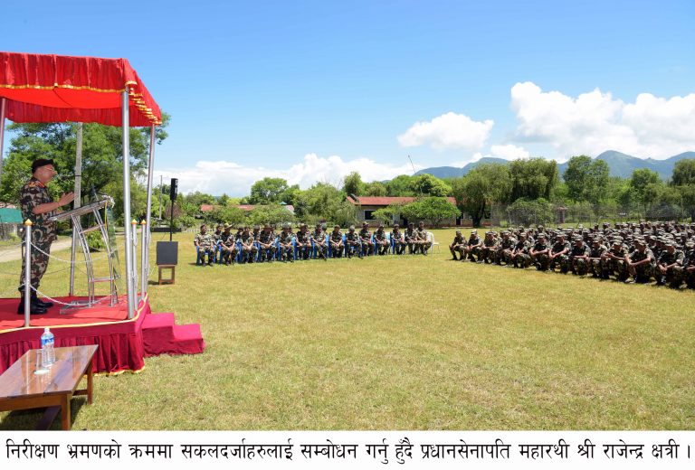 निरीक्षण भ्रमणको क्रममा प्रधानसेनापति क्षत्रीले उक्त बाहिनी अड्डाको बस्तुस्थिति, तालिम, बन्दोबस्तीलगायत अन्य विविध पक्षबारे जानकारी हासिल गर्नुभई सकलदर्जाहरुलाई सम्बोधन गर्नुभएको थियो ।