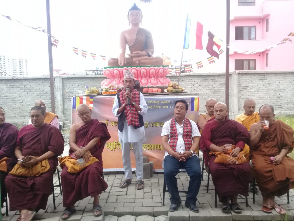 अखिल नेपाल भिक्षु महासंघका अध्यक्ष भिक्षु मैत्री महास्थविरले बुद्ध वचन पाठ गर्दै सो मूर्तिको एक समारोहकाबीच अनावरण गर्नुभयो । सो अवसरमा भिक्षु मैत्रीले ध्यान केन्द्रको निर्माणले शान्ति, करुणा र आध्यात्मिक ज्ञानको विकासमा महत्वपूर्ण टेवा पु¥याउने विश्वास व्यक्त गर्नुभयो ।