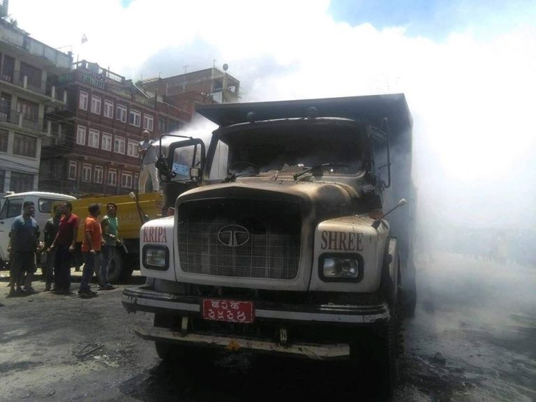 बनेपाको चारदोबाटोमा ट्रिपरको ठक्करबाट मोटरसाइकल चालकको मृत्यु भएको छ । घटनापछि आक्रोशित सर्वसाधारणको टोलीले ट्रिपरमाथि आगजनी समेत गरेका छन् ।