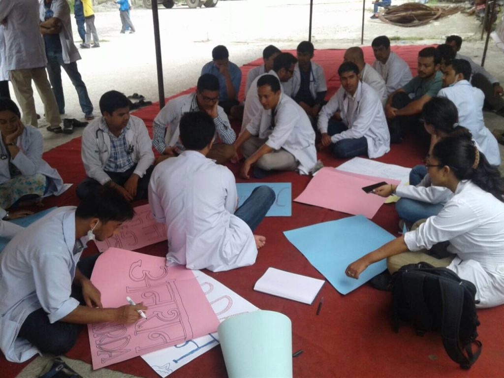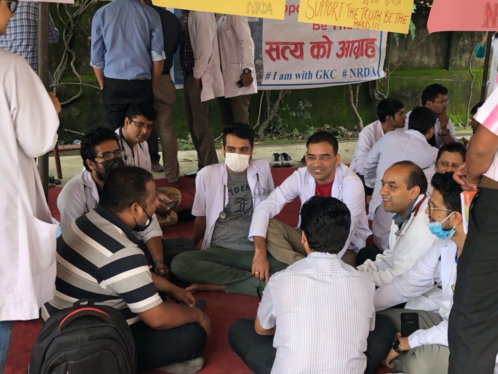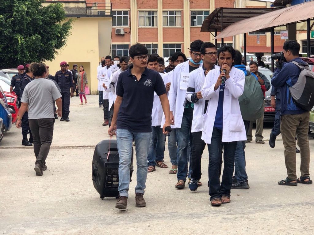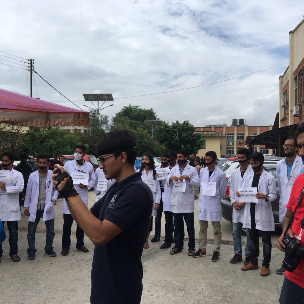 मौन सरकारको बिरोधमा चिकित्सकहरु एप्रोन लगाएर मुखमा कालोपट्टी बाँधेर अस्पताल त्रिवि शिक्षण अस्पताल अगाडि र्यालीमा निस्केका छन् । यतिबेला त्रिवि शिक्षण अस्पताल परिसरमा कोही र्यालीमा त कोही अनसनमा बसेको दृश्य देखिन्छ ।
