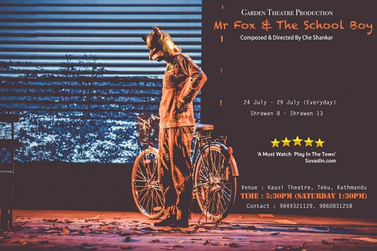 काठमाडौं(नेस) । बालबालिका र जनावरबीचको मनोवैज्ञानिक सम्बन्धमा आधारित नाटक ‘मिस्टर फक्स एण्ड दी स्कूल ब्वोई’ कौशी थिएटरमा शुरु भएको छ । ‘मिस्टर फक्स एण्ड दी स्कूल ब्वोई’ मंगलबारबाट शुरु भएको नाटक साउन १३ गतेसम्म मञ्चन हुने भएको छ।