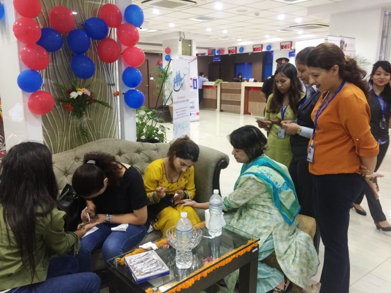 बुधबार मेगा बैंकको राइजिङ मलस्थित मुख्य शाखामा मेहेन्दी लगाउन ग्राहकहरुको भीड थियो । मेहन्दी उत्सव आयोजना गरेकोमा बैंकलाई धन्यवाद दिँदै ग्राहकहरु मेहेन्दी लगाउन व्यस्त थिए ।