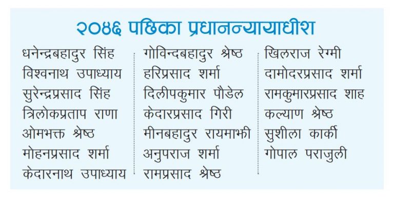सर्वोच्च अदालतमा २०४६ सालपछि अहिलेसम्म २० जना न्यायाधीश प्रधानन्यायाधीश बने । जो जसरी सिङ्गो न्यायालयको उच्च ओहदामा पुगे पनि कतिपय कोही शैक्षिक प्रमाणपत्र त कोही जन्ममिति विवादमा मुछिए । कसैलाई भने महाअभियोगको प्रस्ताव सामना गर्नुपर्ने चुनौती नै आइलाग्यो ।
