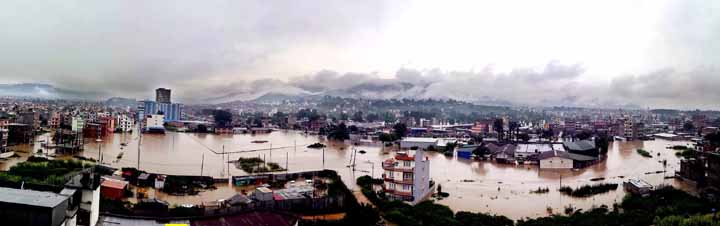 भक्तपुर । गएराति परेको भारी वर्षाका कारण हनुमन्ते खोलामा आएको बाढीका कारण आइतबार मध्यपुरथिमि नगरपालिका–९ राधे राधे क्षेत्रको सिंगो बस्ती र भक्तपुर नगरपालिका–१ सल्लाघारी क्षेत्रको नयाँ बस्ती डुबानमा परेको छ ।