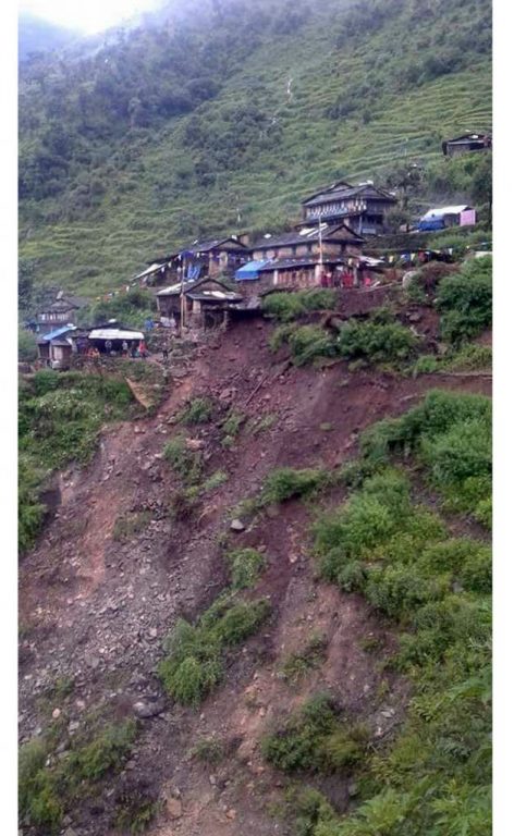 काठमाडाैं । गोरखाको धार्चे गाउँपालिका–७ लापुस्थित जङगाङ डाँडामा पहिरो गएको छ । पहिरोका कारण खानीगाउँका ७२ घरधुरी जोखिममा परेका छन् । अविरल वर्षाका कारण आइतबार बिहान बस्ती नजिकैको पहिरो जाँदा जोखिम बढेको हो ।