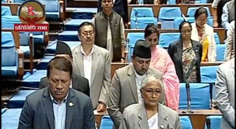 नेपाल समाचारपत्र, काठमाडौं । प्रतिनिधिसभा बैठकले नेपाली कांग्रेसका पूर्व सांसद कमलप्रसाद पंगेनीको निधनमा शोक प्रस्ताव पारित गर्दै स्थगीत भएको छ । आइतबार बसेको बैठकले पंगेनीको निधनमा शोक प्रस्ताव पारित गरेको हो। स्याङ्जाका जिल्ला सभापति एवंम् कांग्रेस नेता पंगेनीको आइतबार बिहान हृदयघातका कारण निधन भएको हो।