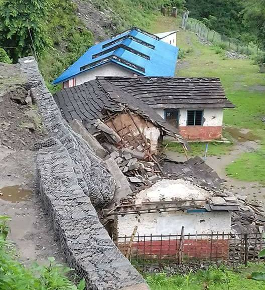 पक्की भवनको संरक्षणका लागी लगाएको पक्की पर्खाल र ग्याविन तारले विद्यालय भवन क्षति पु¥यायो पुनले भने । ६० लाखको लागतमा वनेको पक्की भवनको संरक्षणका लागि १० लाखको लागतमा पक्की पर्खाल र ५ लाखको लागतमा ग्याविन जाली लगाइएको थियो ती सवै पहिरो संगै लडेर कच्ची भवनमा क्षती पु¥याए पुनले भने ।