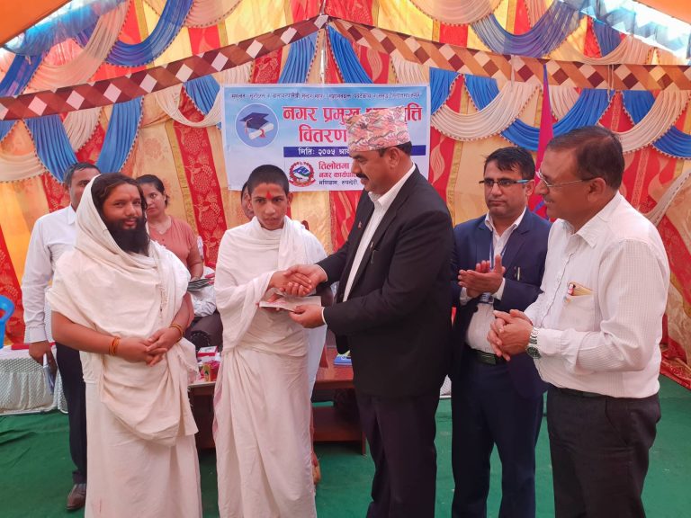 तिलोत्तमा नगर क्षेत्रमा रहेका ४४ वटा सामुदायिक बिद्यालयमा अध्ययन गर्ने गरिव, जेहेन्दार तथा विपन्न परिवारका ४४ जना बिद्यार्थीलाई ‘नगरप्रमुख छात्रबृत्ति’ प्रदान गरिएको हो । सामुदायिक बिद्यालयले आफ्नो बिद्यालयमा अध्ययन गर्ने अति गरिव, जेहेन्दार तथा विपन्न परिवारका सदस्यलाई छनौट गरि वडा कार्यालयको सिफारिसमा नगरपालिकाले उक्त छात्रबृत्ति वितरण गरेको हो ।