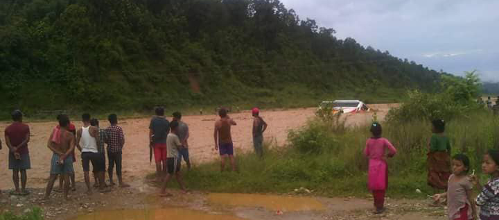 यात्रुका लागि स्वयम्ले जोखिम मोलेका चालकले धन्न यात्रुलाई आरोलेर बस तार्ने प्रयास गरेका थिए । खोला बढेपछि बसलाई केही मिटर तलसम्म बगाएर लगेको इलाका प्रहरी कार्यालय फापरबारीले जनाएको छ । घटनामा मानवीय क्षति भने भएन ।