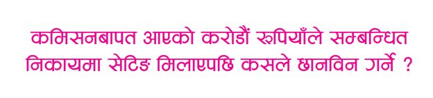 कमिशन बापत आएको करोडौं रुपैयाले सम्बन्धित निकायमा सेटिङ मिलाएपछि कस्ले छानविन गर्ने ?