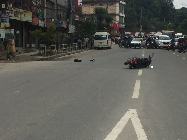 बीच सडकमै बम राखिएकाले सवारीसाधन अावतजावत बन्द भएकाे छ । प्रहरीले घटनास्थल पुगेर बम डिस्पाेज गर्नलागेकाे जनाइएकाे छ ।