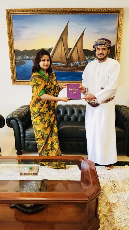 ओमान लागि नेपाली राजदूत शर्मिला पराजुली ढकालले ओमानका राजा सेदसँग शिष्टाचार भेटवार्ता गर्दा त्यहाँको संस्कृति तथा सम्पदा मन्त्रालयका महासचिव समेत रहनुभएका सेदले नेपालसँगको सम्बन्ध निकट बनाउने बताउनुभएको हो ।